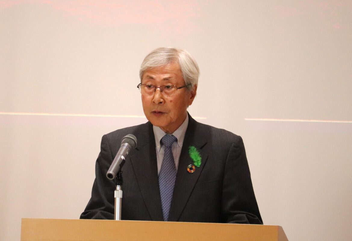 「林業の復活による地域創生は森林づくり全国推進会議様と私ども国民会議の共通の目標であり、我が国の2030年のSDGs達成や2050年のカーボンニュートラルの実現に向けた志も同じくしています。国産材の利用は近年着実に拡大しており、都市部においても国産材を活用し、優れたデザイン性を持つ木造住宅建築が目に見えて増えてきております。関係者の皆様のご努力に心から敬意を表したいと思います。これからも木々に囲まれた豊かなまちづくりを一層推進するためには、その源泉となる持続可能な森が不可欠です。木を植えて、育てて使う。そして木を使うことによって、また植えて育てるという、この循環型の新しい林業を目指し、私どもも国と連携しながら活動を続けてまいりたいと存じます。」