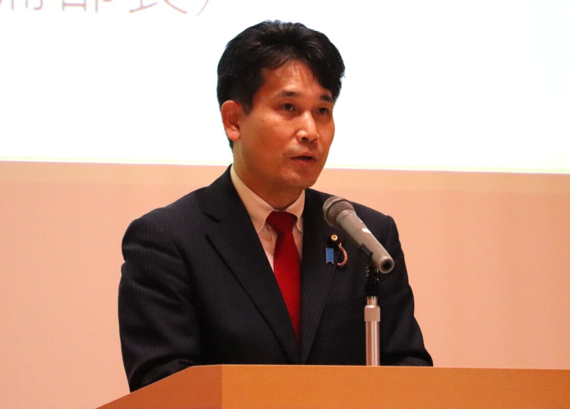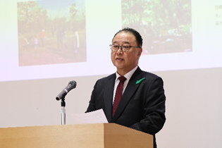 「我が国の森林は戦後植樹されたものが50年を過ぎ、今、使い時になって参りました。しかしながら、我が国においても、また、社会においても木を使う機会が減っているのが現状であります。山をしっかりと守っていく出口をどうするか、森林だけではなく木材をどのように活用していくのか、我々としましてもそれらを地域や世代、そして社会に対して、色々な方のお力をお借りしながらしっかりと発信して参りたいと考えています。本日は優良事例の発信により、多様な主体の参画がさらに広がるとともに、気候変動対策や生物多様性保全への貢献といった観点からもその取組が評価され、会員の皆様の社会的価値の向上につながることを期待しています。農林水産省としても、森の国らしい国づくりを進めていけるよう、様々な施策を通じて皆様方の引き続きのご支援とご協力をお願い申し上げます。」