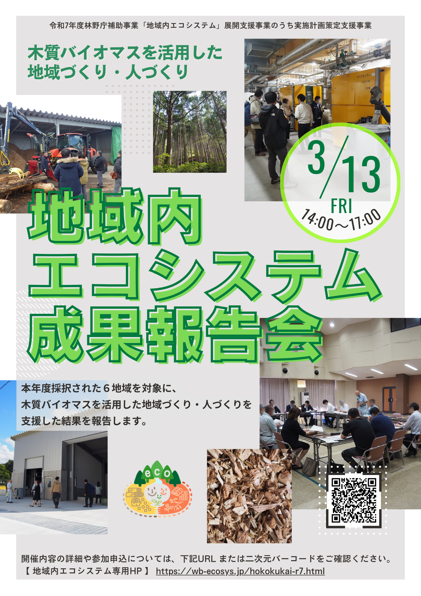 (一社)日本森林技術協会は、林野庁補助事業である令和7年度「地域内エコシステム」展開支援事業(実施計画策定支援事業)の成果報告会を3/13(金)に開催いたします(ウェビナー形式)。