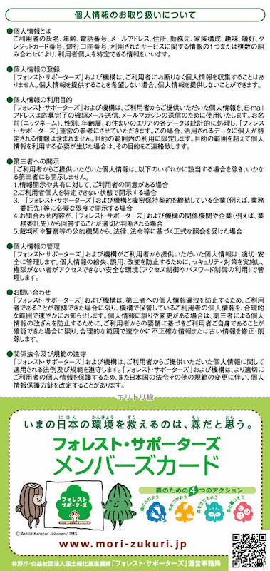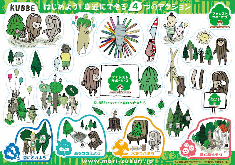 これにあわせて「フォレスト・サポーターズ」運営事務局である公益社団法人国土緑化推進機構および美しい森林(もり)づくり全国推進会議では、「KUBBE(キュッパ)」とコラボレーションして、パンフレット、登録カード、ノベルティなどを制作し、随時サポーター登録を受付けています。「KUBBE(キュッパ)」仕様の普及啓発ツールは、東京都美術館(東京・上野)での「キュッパのびじゅつかん」開催初日である7月18日から活用を開始いたします。